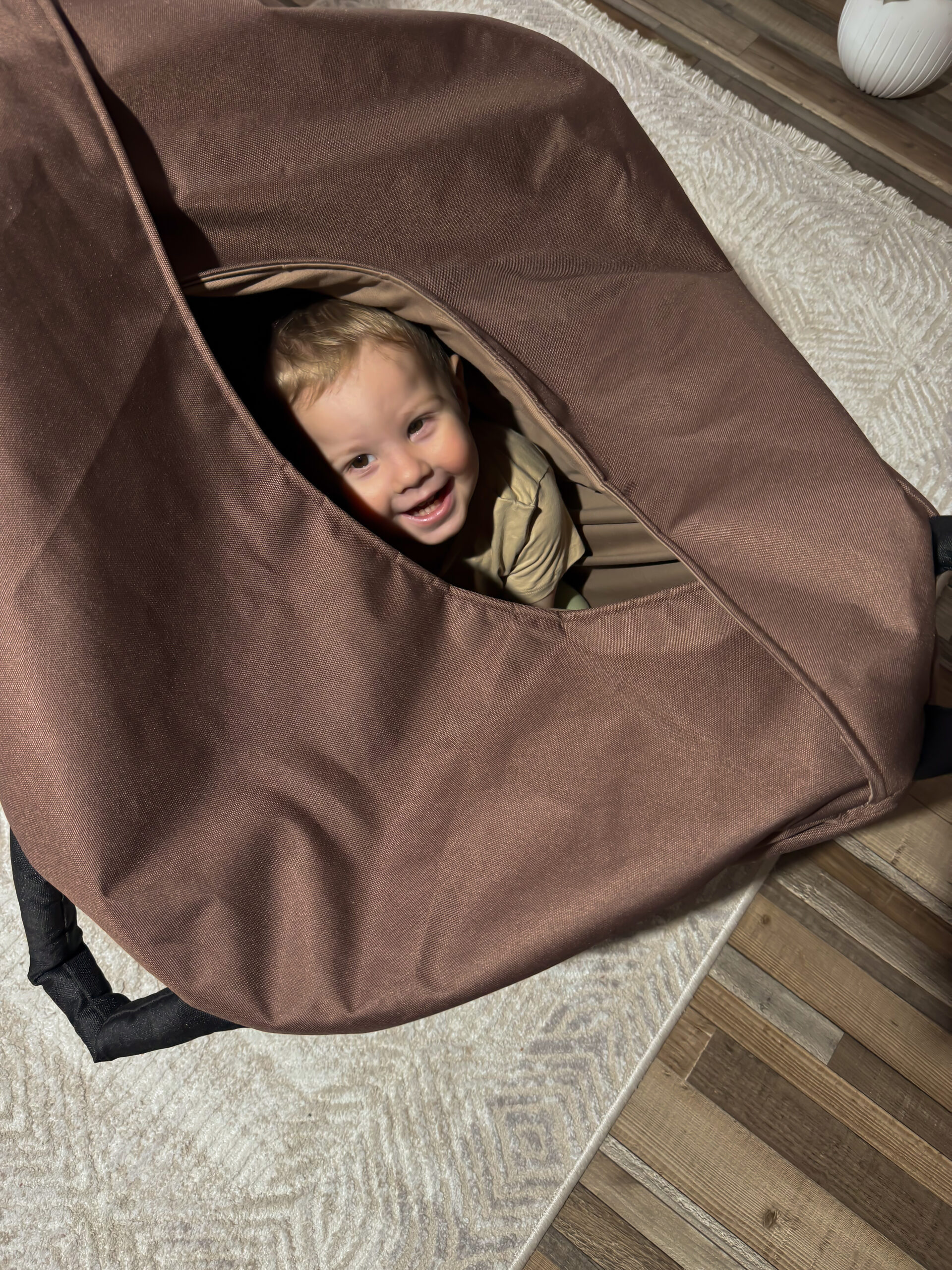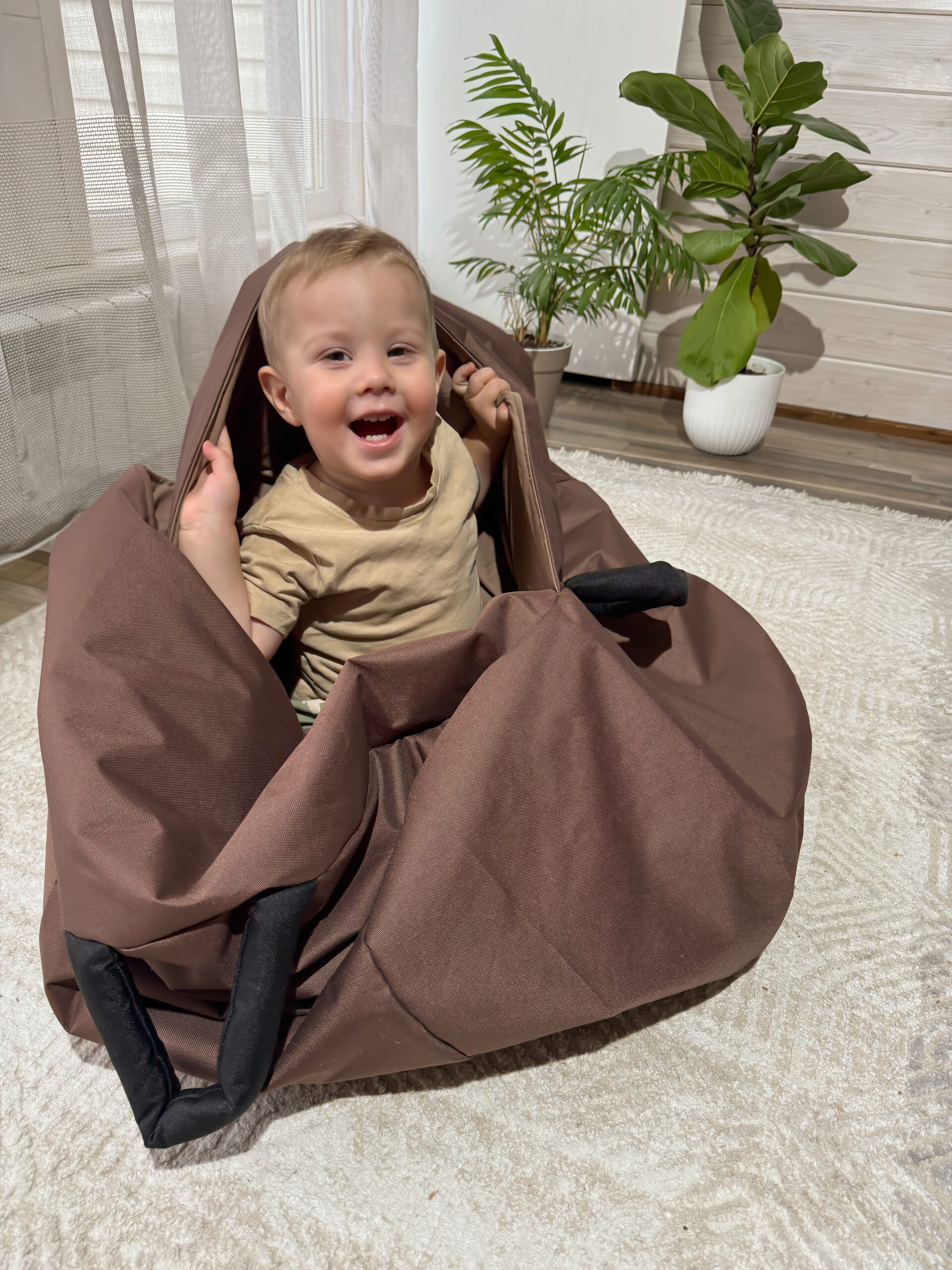 Яйцо Кислинга — это большой мягкий, шарообразный мешок с четырьмя ручками, который служит уютным и безопасным пространством для ребёнка. В него можно залезть, как в домик, закрыться, спрятаться или отдохнуть, а также поиграть: прыгать, перекатываться или просто почувствовать себя защищённым.