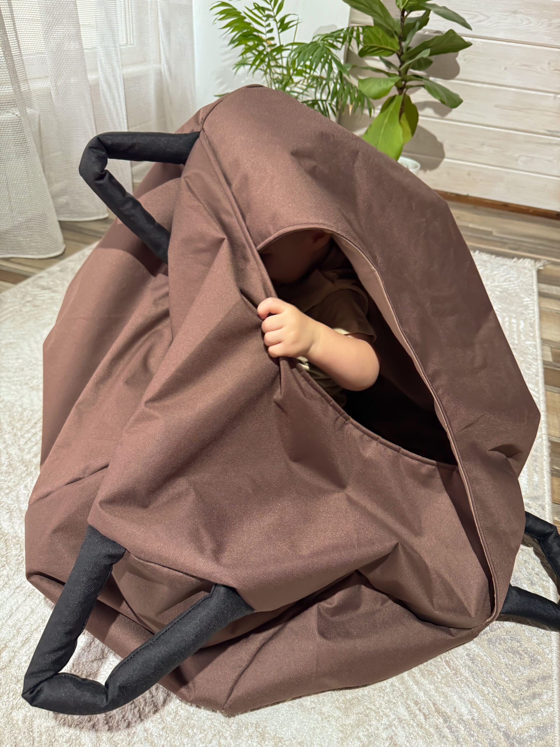 Вход: сделан через отверстие, которое не полностью закрывается, чтобы ребёнок не запутался и чувствовал себя в безопасности, легко входя и выходя из яйца